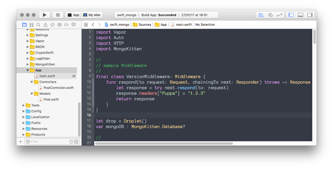 I’ve used a simple middleware on each http request and the MongoDB package (MongoKitten).